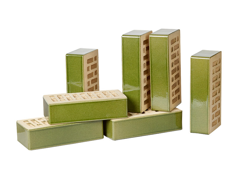 Кирпич RECKE BRICKEREI 1-28-02-0-00 насыщенный травяной цвет с неравномерным нанесением глазури. Такой прием дает мягкий градиент и усиливает объем.