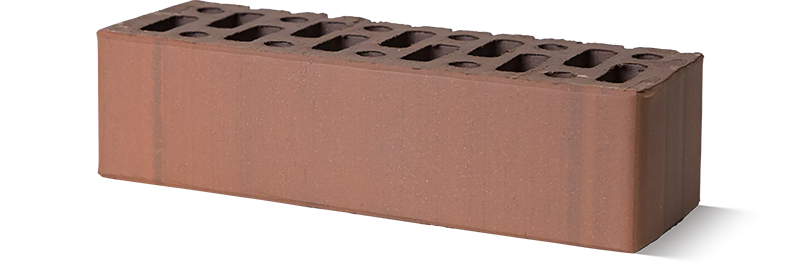 Оригинальный красно-коричневый пестрый цвет и гладкая лицевая поверхность. Производится из смеси красножгущейся глины, песка и тритетраоксида марганца по технологии объемного окрашивания и окислительного обжига.
