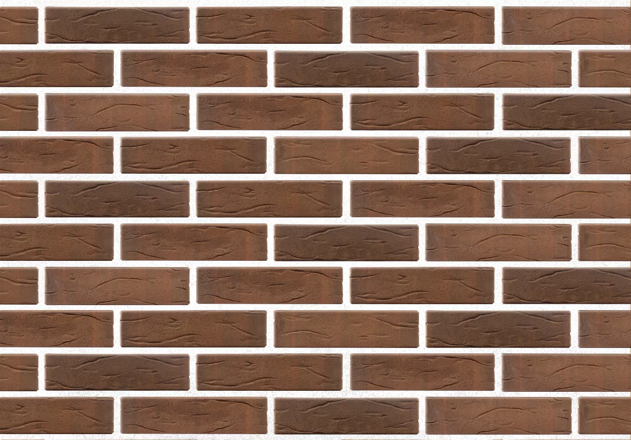 Оригинальный красно-коричневый пестрый цвет и рельефная лицевая поверхность. Производится из смеси красножгущейся глины, песка и тритетраоксида марганца по технологии объемного окрашивания и окислительного обжига.