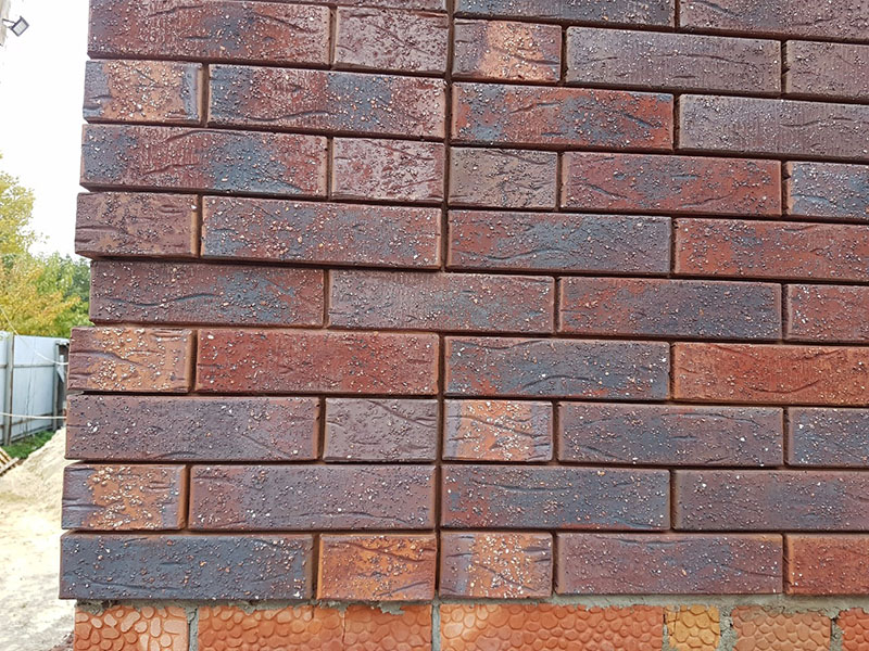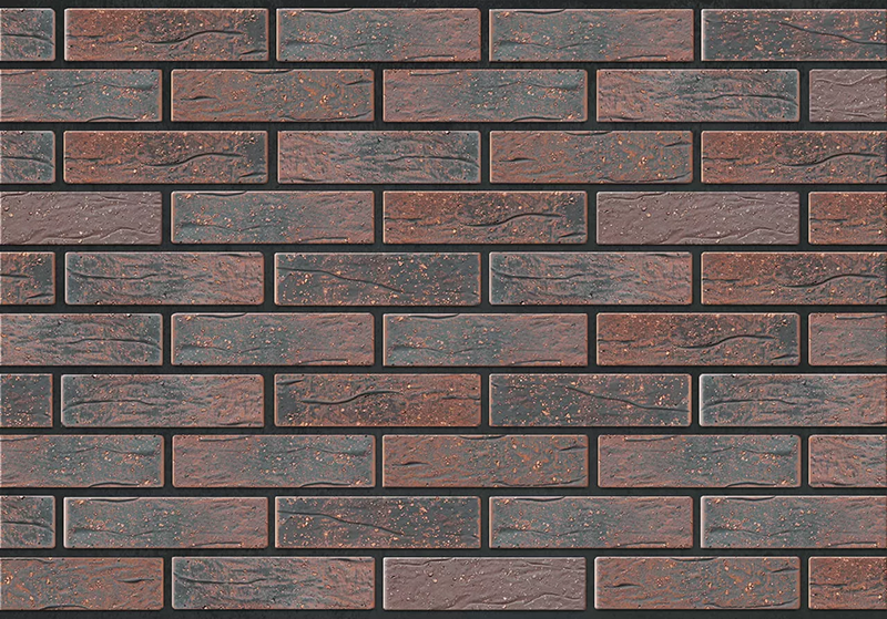 Уникальный серо-черно-фиолетовый цвет и рельефная лицевая поверхность. Производится из смеси красножгущейся глины и песка с торкретированием лицевой поверхности натуральными минеральными компонентами и крупнофракционным кварцевым песком по технологии редукционного-flash обжига.