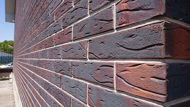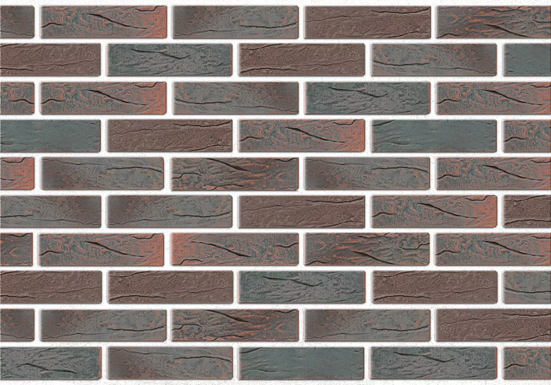 Необычный серо-черно-фиолетовый цвет и рельефная лицевая поверхность. Производится из смеси красножгущейся глины и песка с торкретированием лицевой поверхности натуральными минеральными компонентами по технологии редукционного-flash обжига.